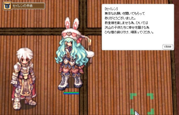 B鯖の3次職のキャラはみんなカンストしてるから幸せのひな壇で経験値をもらう予定なかったけど、セイレンの手紙をもらわないと!と思って。
